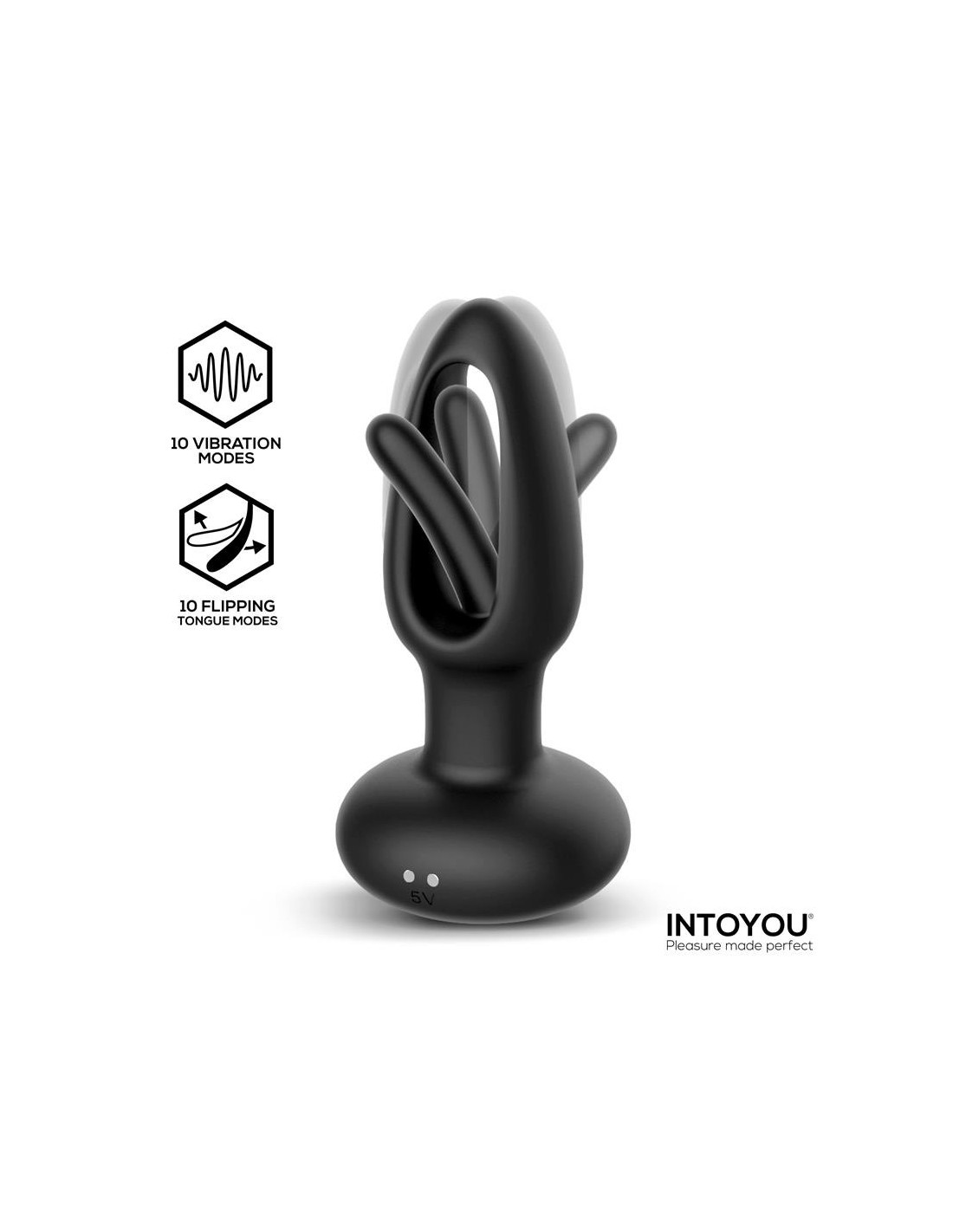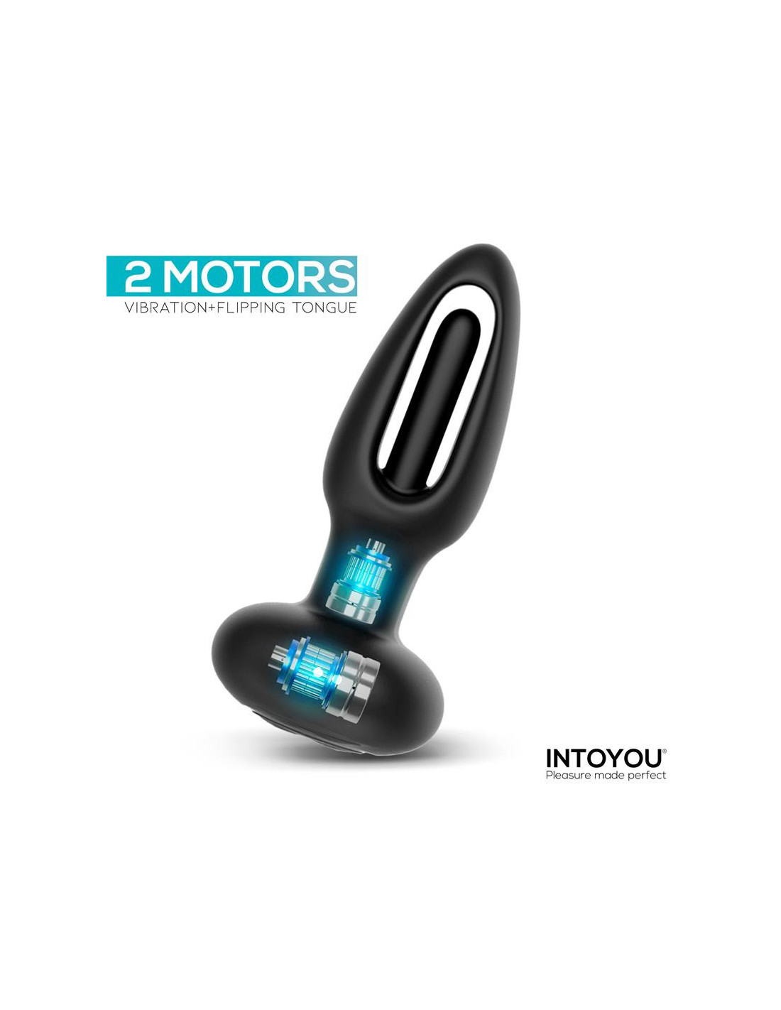 Sasha plug anal con vibración y lengua efecto flipping. 2 motores, 10 modos, control remoto, silicona premium e impermeable IPX6. Recargable USB magnético.