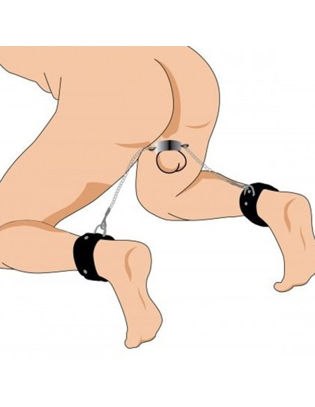 - Set diseñado específicamente para roles de dominación y sumisión masculinos: incluye anillo metálico para testículos + esposas para tobillos unidas por cadena.