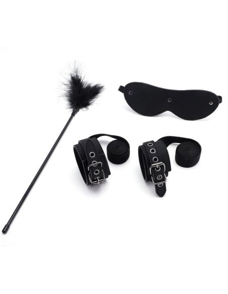 El set incluye esposas para muñecas, un antifaz que intensifica la percepción al privar de la vista, y una pluma estimuladora ideal para recorrer la piel lentamente y jugar con el suspense. La combinación de restricción y estimulación ligera convierte cada contacto en una sensación más intensa, perfecta para el juego previo y la exploración erótica en pareja.