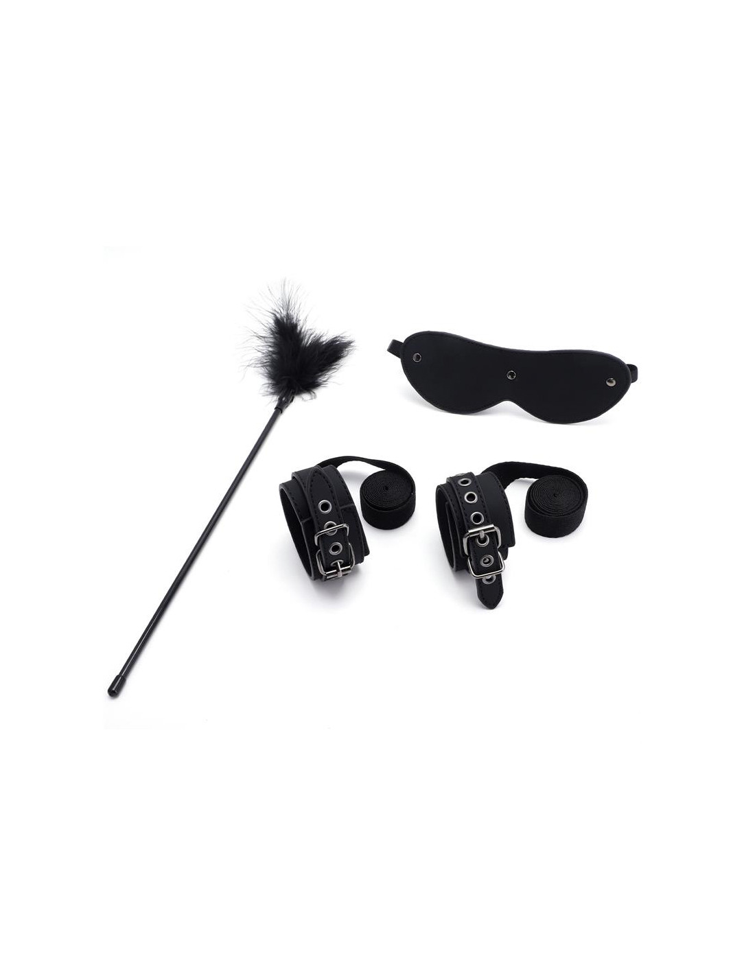 Déjate llevar por el juego de los sentidos con este kit perfecto para explorar el placer de la restricción suave y la estimulación sensorial. Diseñado para despertar la curiosidad y aumentar la anticipación, este set combina control, misterio y caricias provocadoras en una sola experiencia.