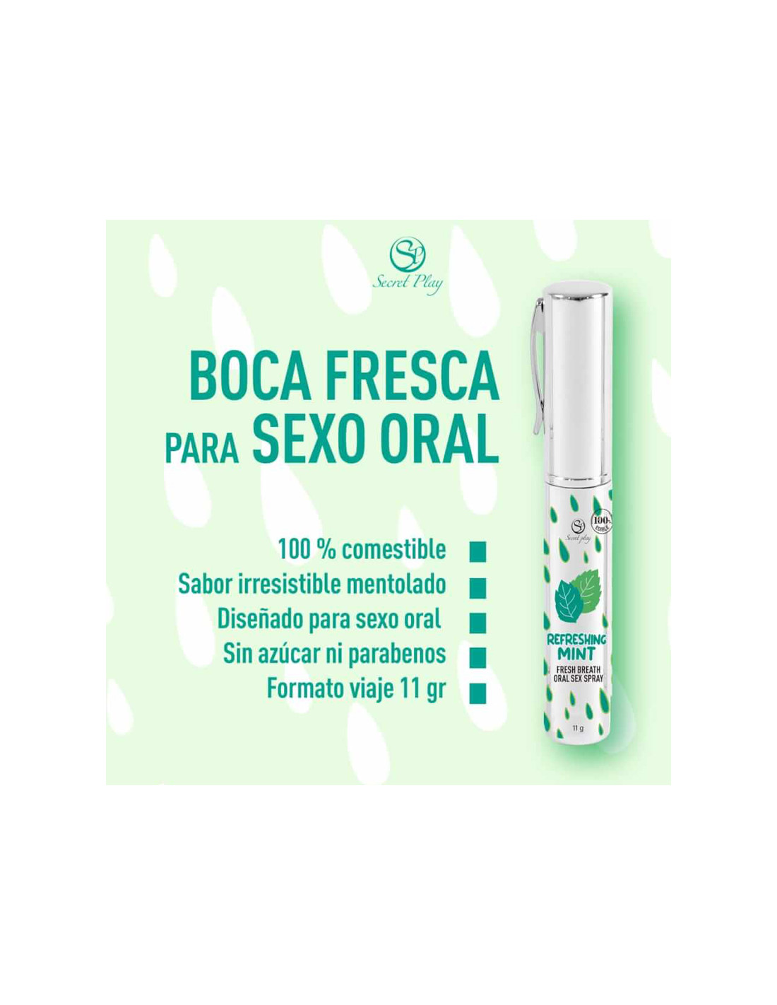 Spray de Sexo Oral Aliento Fresco Menta – Boca Hidratada, Aliento Refrescado y Placer Oral Intensificado