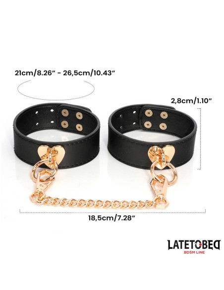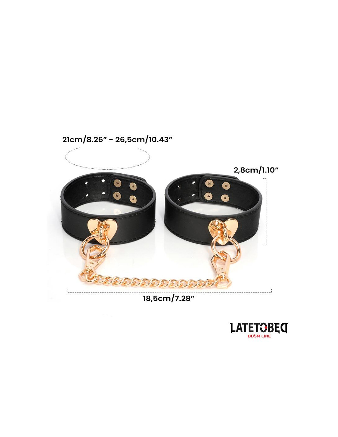 - Esposas para muñecas: un clásico imprescindible. Ajustables, suaves y con detalles de corazones dorados que añaden sensualidad y estilo.