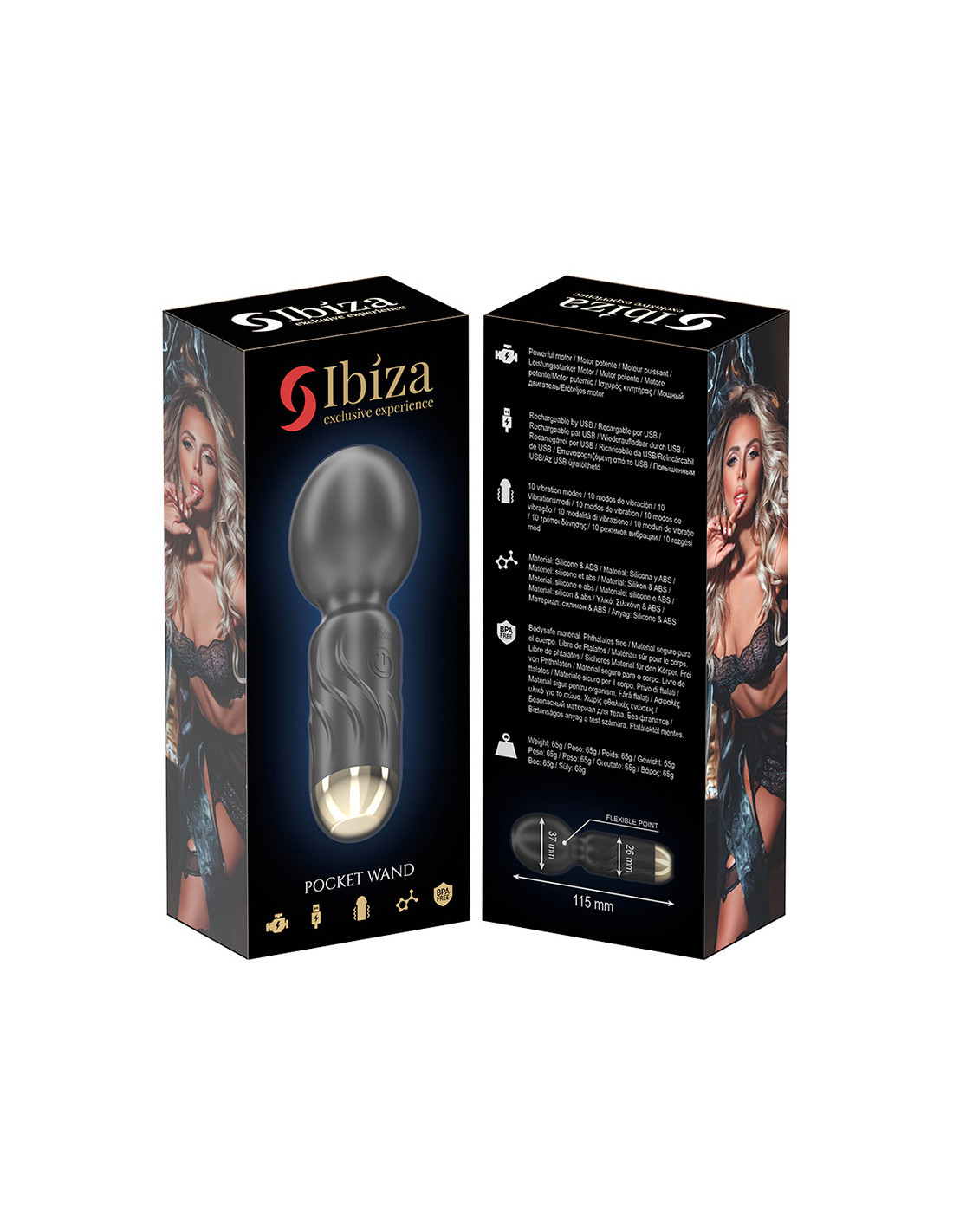 El IBIZA Wand Pocket está diseñado para acompañarte a todas partes. Su tamaño discreto lo convierte en el compañero perfecto de viaje, listo para regalarte placer instantáneo o ayudarte a desconectar tras un largo día. Ya sea sobre la piel desnuda o sobre la ropa, su cabeza flexible acaricia y estimula con precisión cada zona del cuerpo.