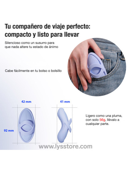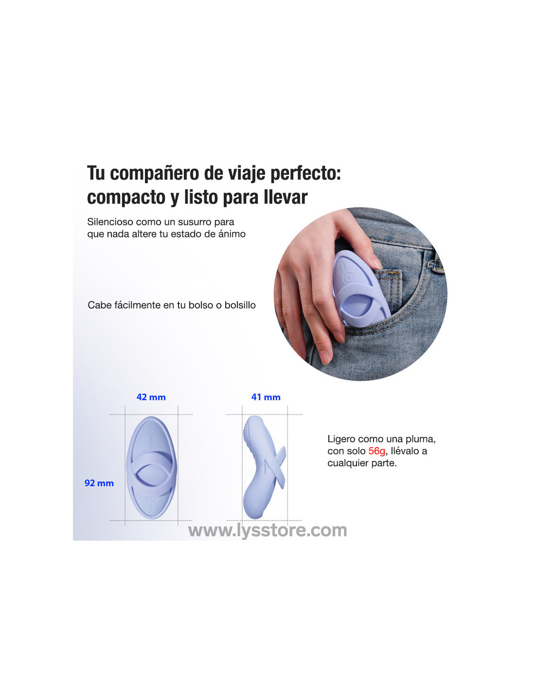 Su tamaño compacto y diseño ergonómico lo hacen ideal para usar en pareja o a solas, y su resistencia al agua (IPX7) permite disfrutarlo también bajo la ducha. Además, cuenta con bloqueo de viaje, memoria de último modo y batería recargable por USB, pensados para tu comodidad y discreción.