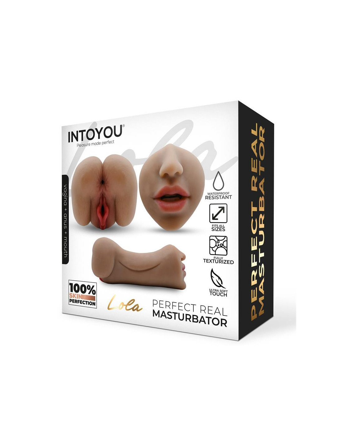 Lola no es un masturbador cualquiera, es la respuesta a quien no quiere elegir. Este modelo de la línea Liketrue by Intoyou eleva el nivel con un diseño triple que combina vagina, ano y boca en una sola pieza, cada uno con sensaciones diferenciadas y muy trabajadas.