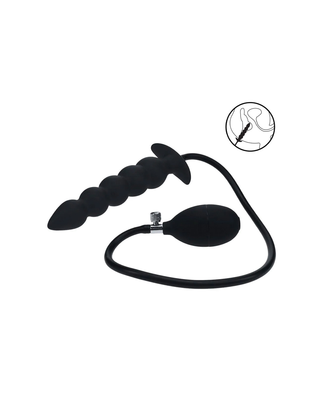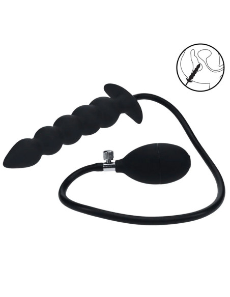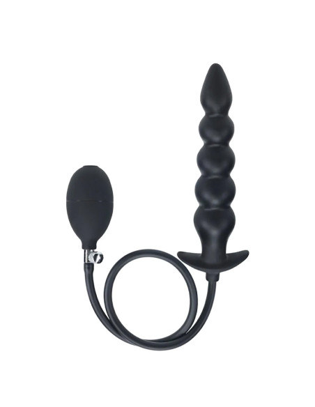 Plug anal inflable de silicona con perlas graduadas. Control total del diámetro para un placer anal intenso, seguro y progresivo. Apto para hombre, mujer y pareja.