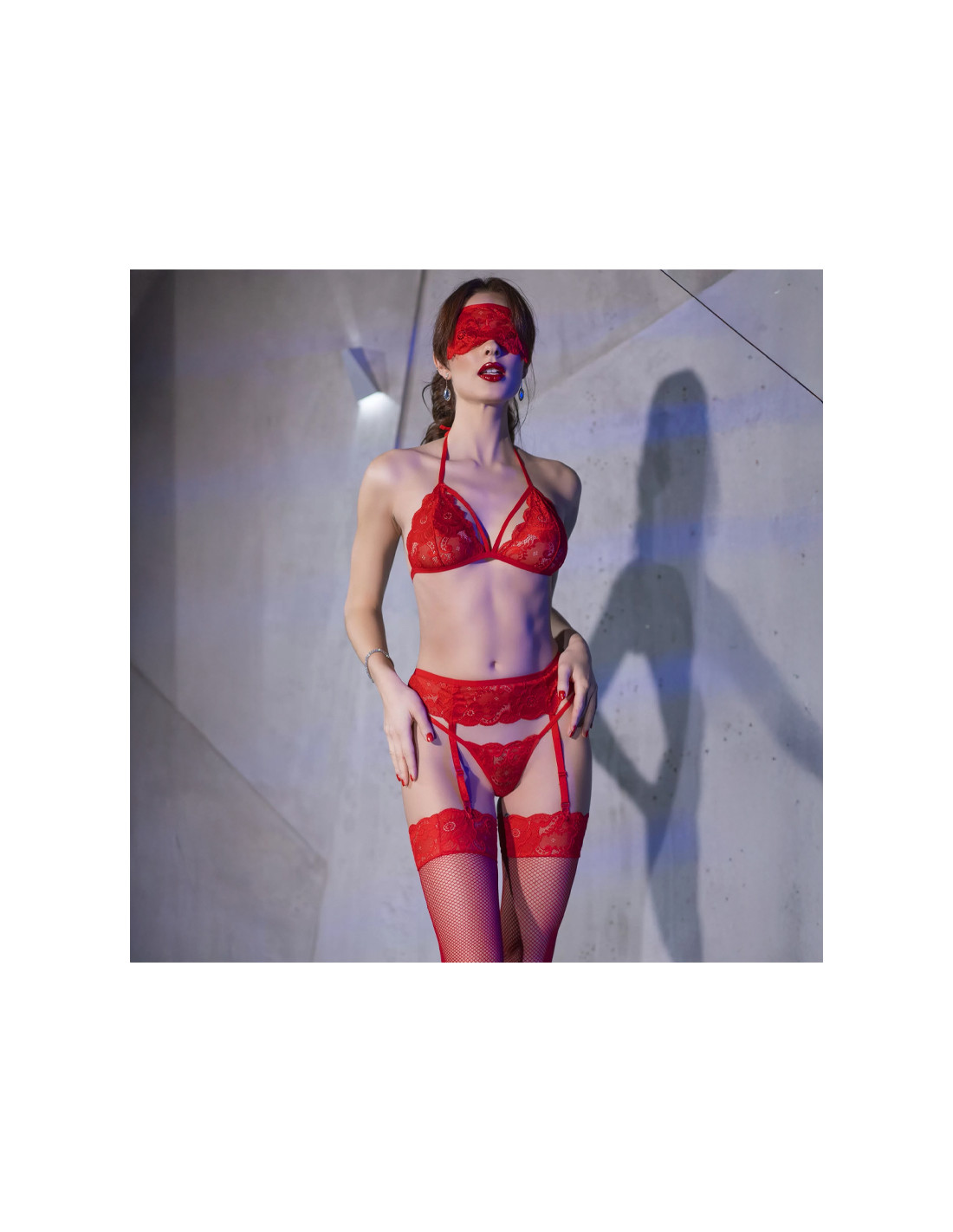 Set de lencería erótica de 5 piezas con encaje y antifaz Rojo